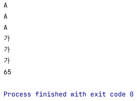 - 작은 따옴표(')로 감싼 문자를 대입하면 해당 문자의 유니코드 저장