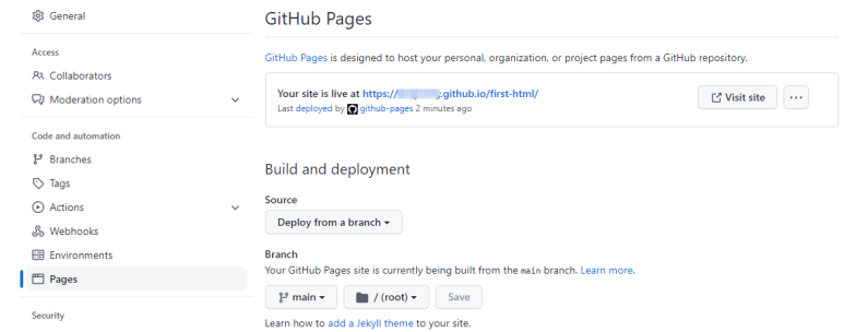 pages build and deployment 클릭.