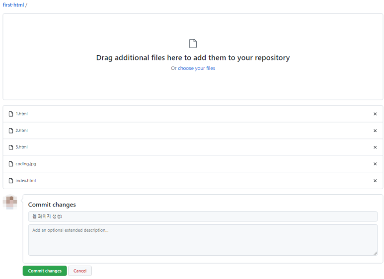 Commit changes 버튼 누름!