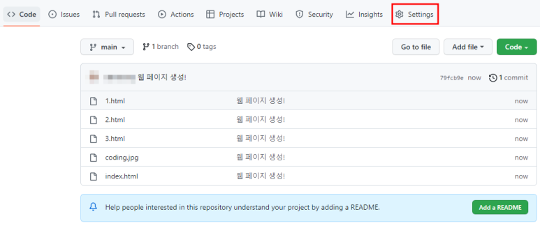 Add a README file 추가해도 상관 없음.