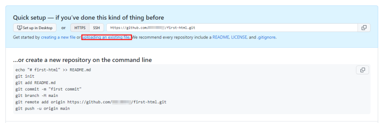 uploading an existing file 클릭.
