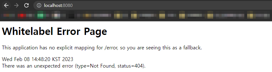 으로 들어가면 'Whitelabel Error Page'를 확인할 수 있다.