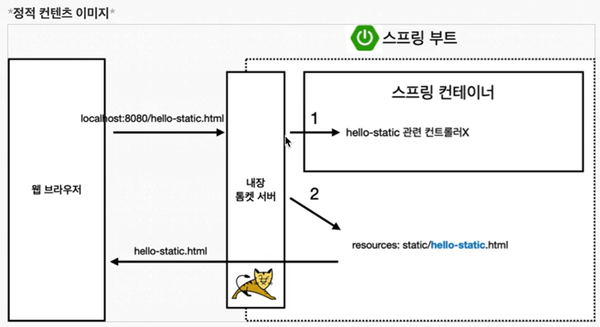 - 정적 컨텐츠는 웹 페이지에 파일을 그대로 내려주는 거