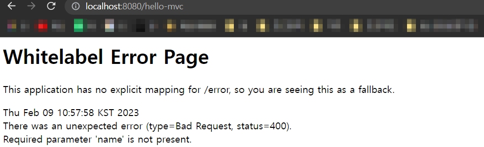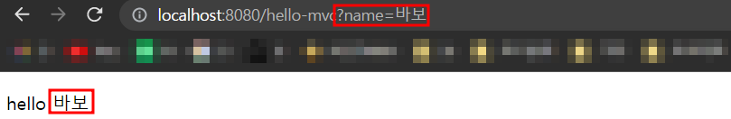 public String helloMvc(@RequestParam("name") String name, Model model) { // 외부에서 파라미터를 받을 때 @RequestParam을 적는다