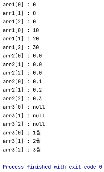 참조할 배열 객체가 없다면 배열 변수는 null 값으로 초기화될 수 있음