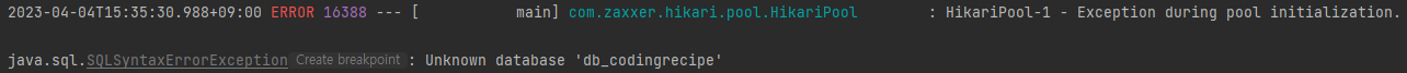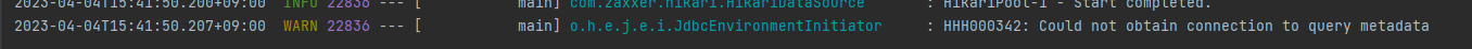 2023-04-04T15:35:30.988+09:00 ERROR 16388 --- [ main] com.zaxxer.hikari.pool.HikariPool : HikariPool-1 - Exception during pool initialization.