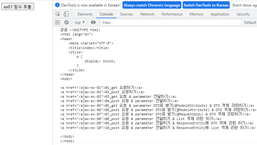 // ajaxEx01() 메서드 호출