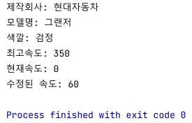 System.out.println("현재 속도: " + speed + "km/h");