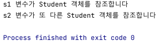 System.out.println("s2 변수가 또 다른 Student 객체를 참조합니다");
