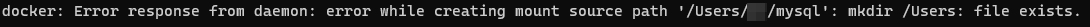 docker: Error response from daemon: error while creating mount source path '/Users/xx/mysql': mkdir /Users: file exists.
