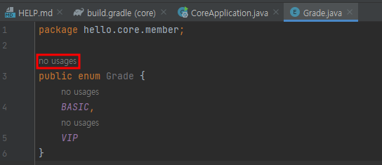 이렇게 하면 `no usages`가 사라진 것을 볼 수 있다.
