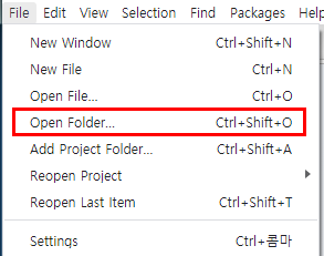 아톰에서 open Floder 클릭해서 위에서 만든 폴더를 지정한다.