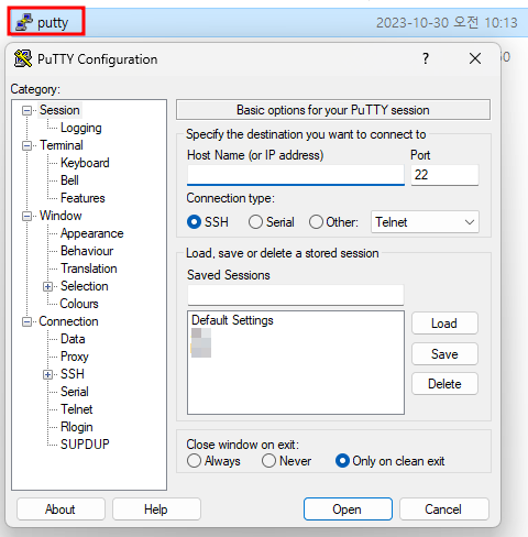 2. PuTTY 오픈