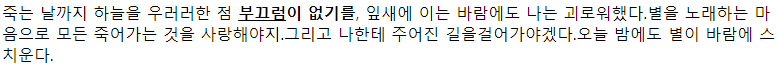 죽는 날까지 하늘을 우러러한 점 <strong><u>부끄럼</u>이 없기를</strong>,