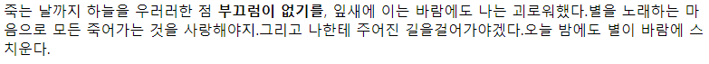 죽는 날까지 하늘을 우러러한 점 <strong>부끄럼이 없기를</strong>,