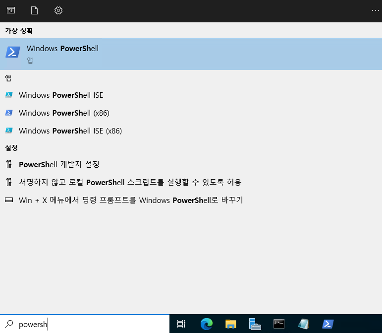 시작 > Windows PowerShell 검색