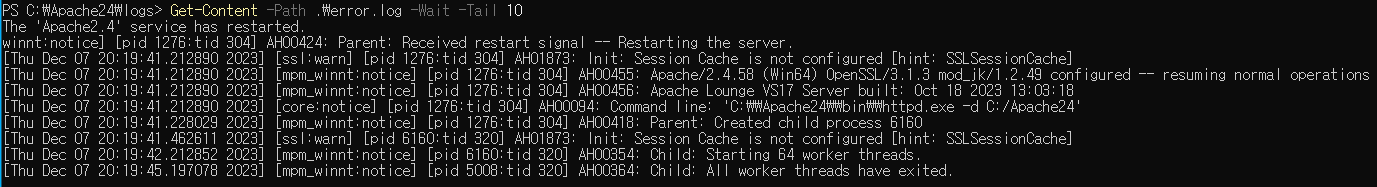 윈도우에서 아파치를 설치하고, 에러로그를 보고 싶었다.