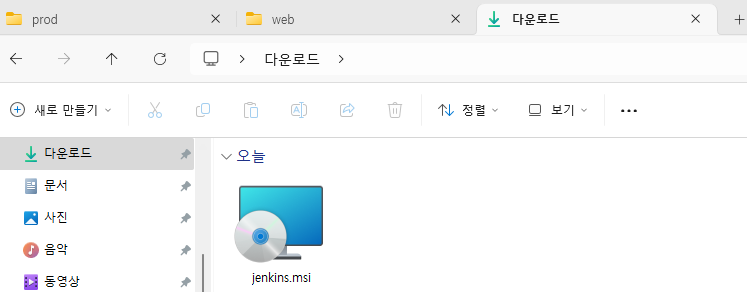 다운로드 폴더에 [jenkins.msi]가 다운로드 되었다.