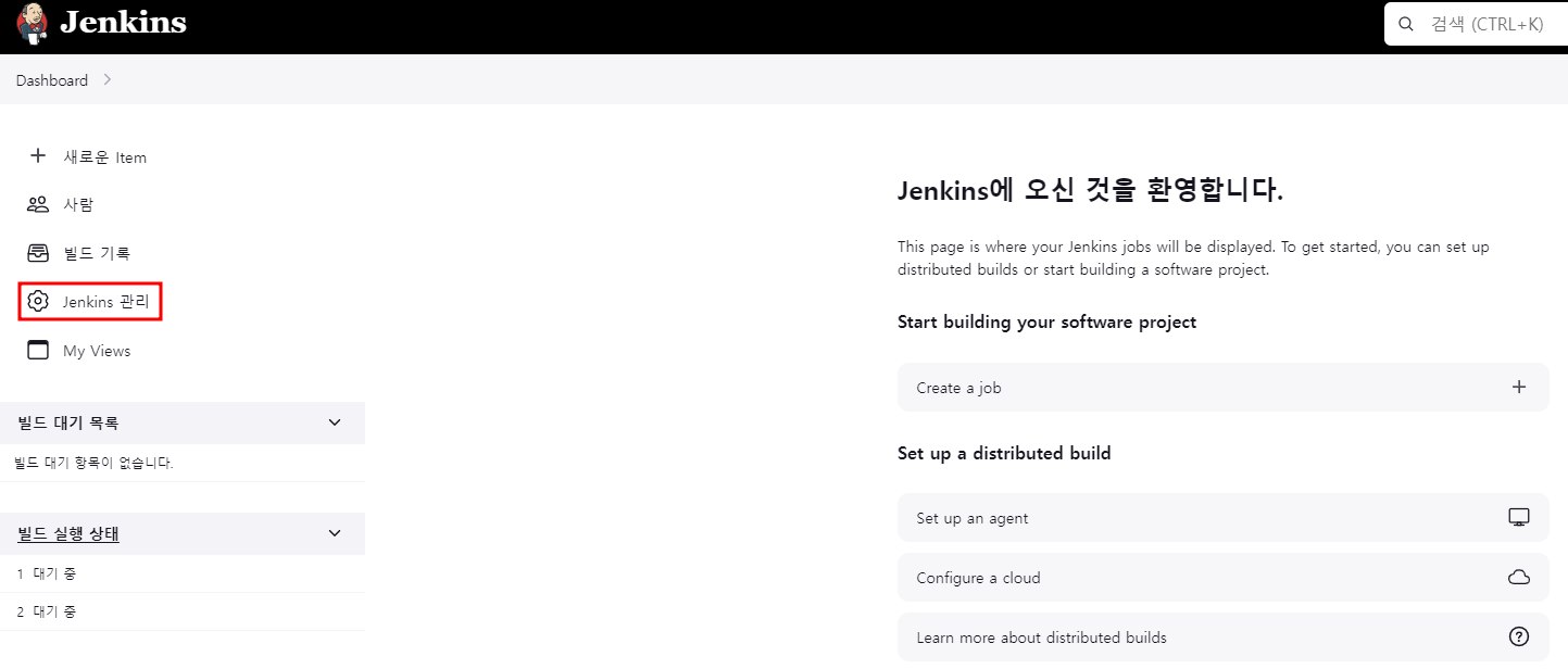 플러그인 설치는 Jenkins 관리에 들어가서!