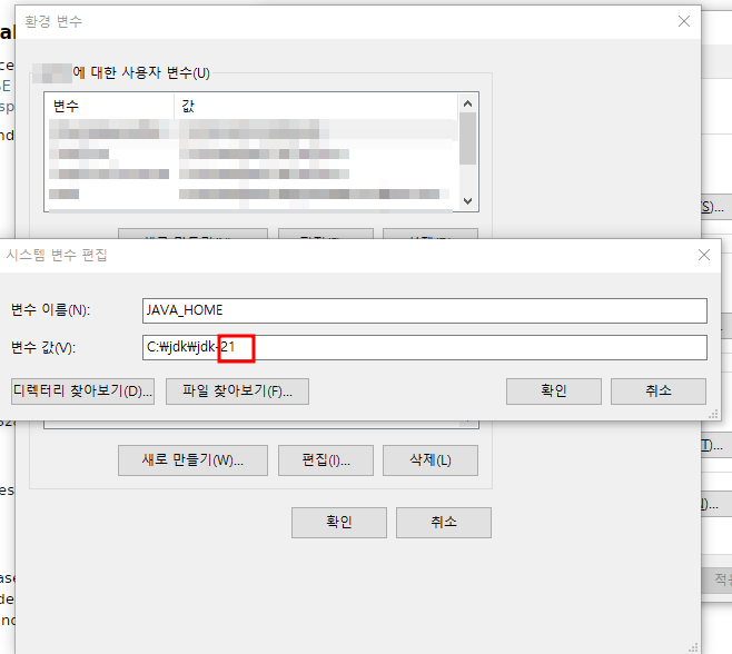 시스템 변수의 [JAVA_HOME]의 값을 변경할 때 저 숫자 부분만 바꾸면 된다.