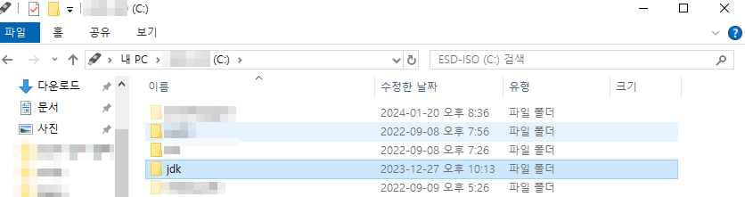 C드라이브에 jdk 디렉터리를 생성한다.
