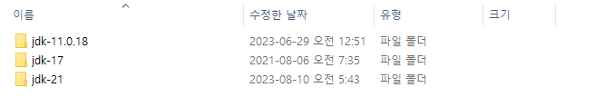 다른 버전의 jdk를 설치하면 역시나 설치한 버전을 쉽게 확인할 수 있다.