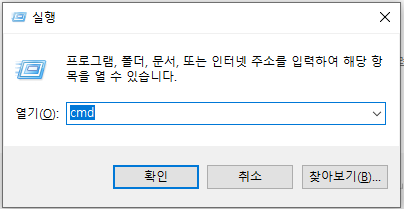 실행을 열고, cmd를 입력한다.