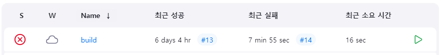 그리고 세팅을 한 후에, 파이프라인까지 작성한 다음 '실행' 버튼을 클릭했는데 빌드에 실패했다.