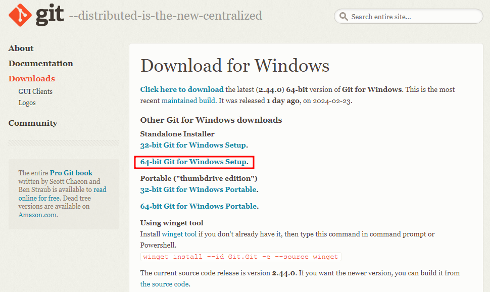 windows를 사용하고 있기 때문에, [64-bit Git for Windows Setup]을 클릭한다.