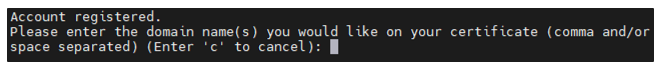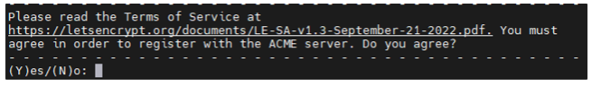 ACME 서버에 등록 요청에 동의하면 Y, 아니면 N 을 입력한다.
