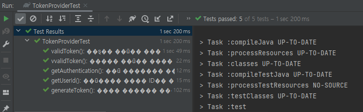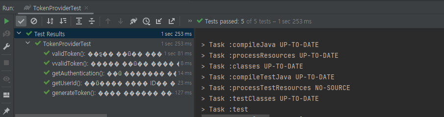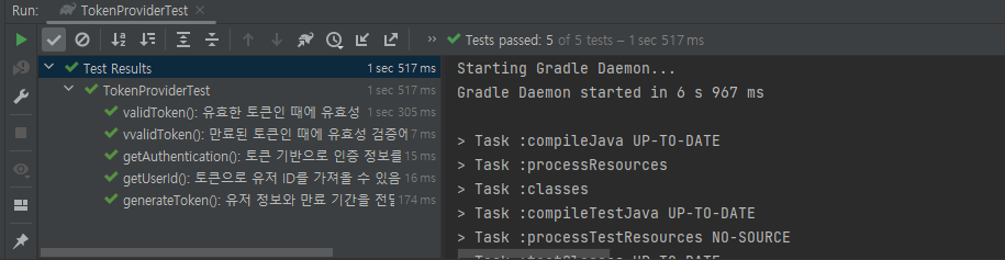 인텔리제이를 완전히 종료한 후에 다시 테스트를 실행해 보니!