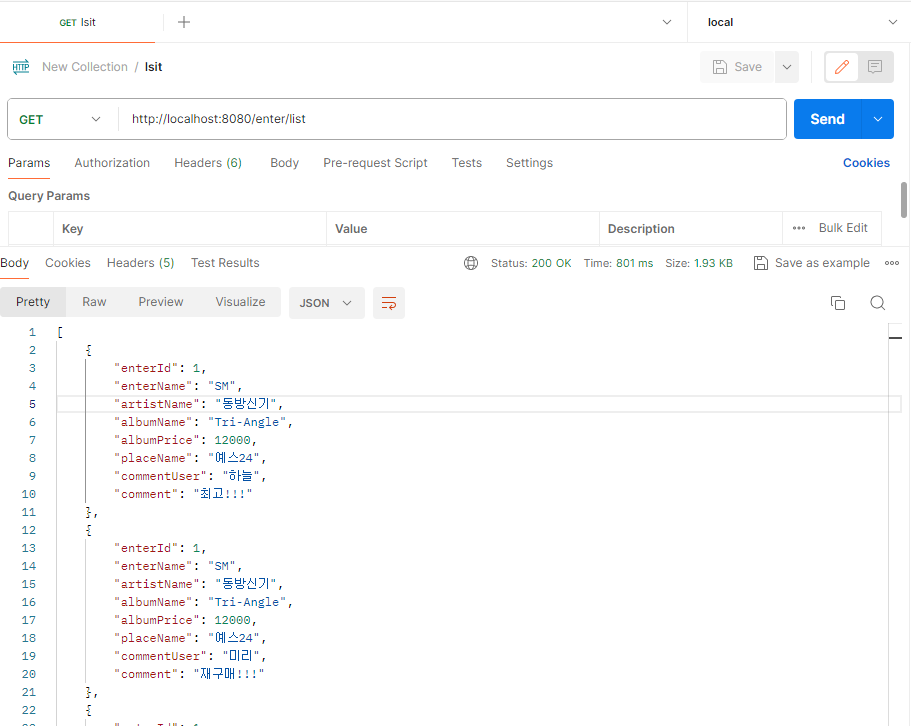 포스트맨에서 호출을 해본다.
