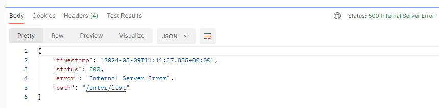 postman에서는 500에러가 떴다.