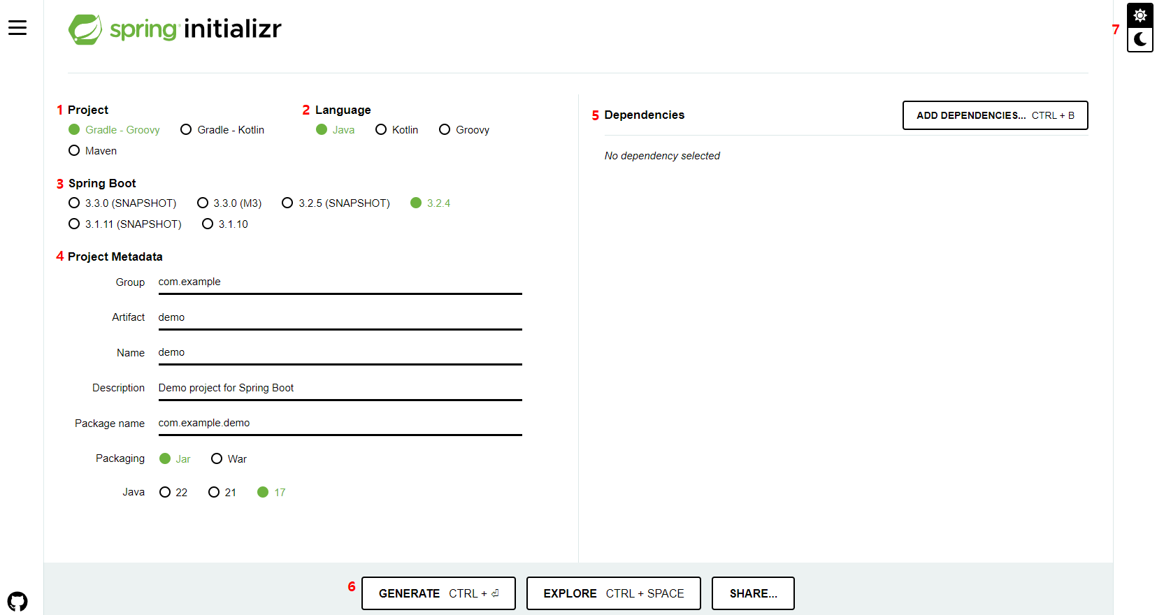 Spring 기반으로 Spring Boot 프로젝트를 만들어주는 사이트