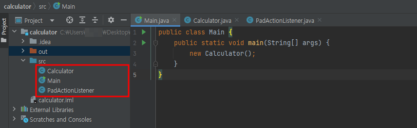 기존에 `Calculator` 클래스로 되어있던 것을 이렇게 3개의 클래스로 분리를 했다.