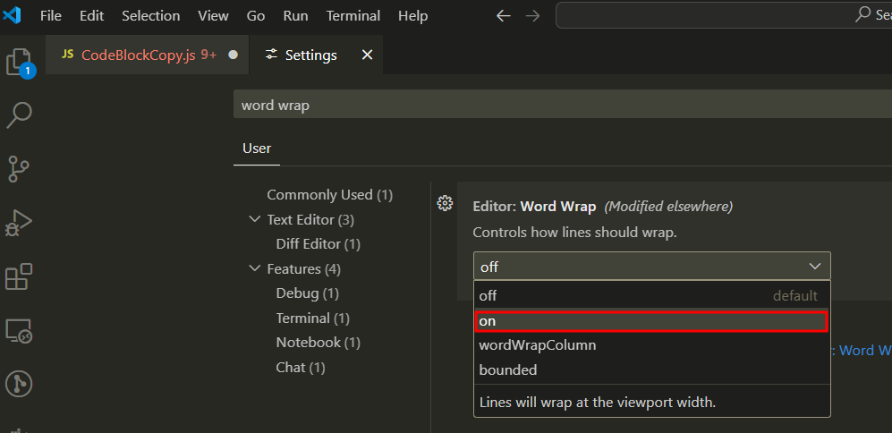 VSCode를 오픈 시, 한 행이 너무 길면 화면을 넘어가는 경우가 있다.