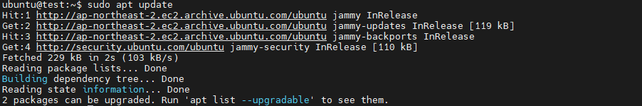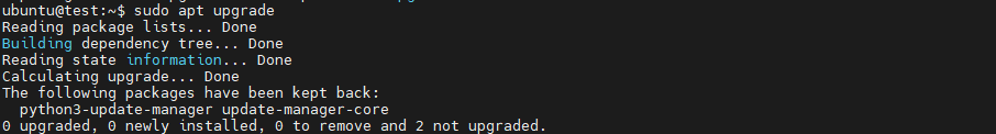 `sudo apt upgrade` 명령어는 시스템에 설치된 모든 소프트웨어 패키지를 최신 버전으로 업그레이드 하는데 사용됨