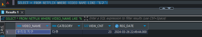 SELECT * FROM NETFLIX WHERE VIDEO_NAME LIKE '%구';