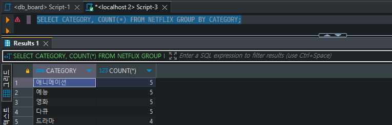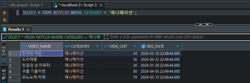 SELECT * FROM NETFLIX WHERE CATEGORY = '애니메이션';