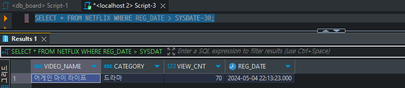 SELECT * FROM NETFLIX WHERE REG_DATE > SYSDATE-30;