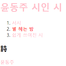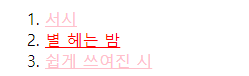 <li><a href="2.html" style="color: red; text-decoration:underline;">별 헤는 밤</a></li>