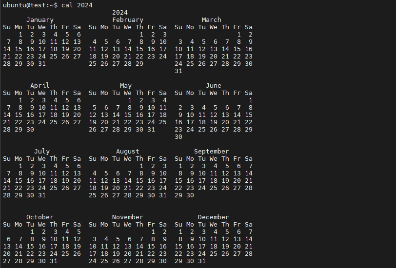 - `sudo apt install ncal`로 cal 설치