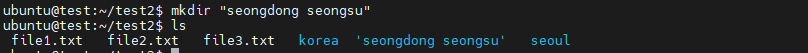 디렉터리명 띄어쓰기 : mkdir " "