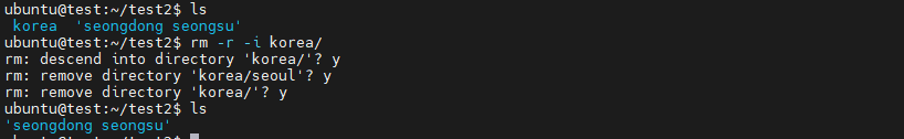하위 디렉터리 있는 것도 한번에 삭제 : rm -r -i