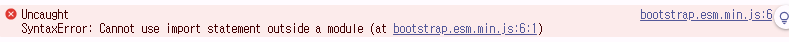 Uncaught SyntaxError: Cannot use import statement outside a module (at bootstrap.esm.min.js:6:1)