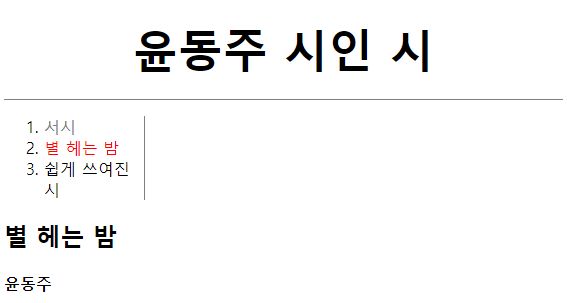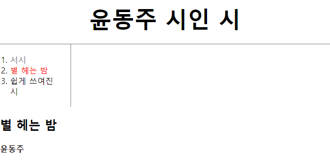 <li><a href="2.html" class="saw" id="active">별 헤는 밤</a></li>
