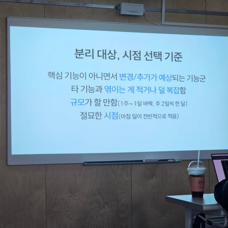 '모놀리식'이라는 단어를 책으로만 본 터라, 어떻게 모놀리식 -> 마이크로화 할 수 있는지가 궁금하여 참여를 신청하게 되었다. 또한 다른 회사에서는 어떤 식으로 서비스를 운영하는지에 대해서도 궁금함을 항상 갖고 있기 때문에 참여하게 되었다. 또 하나는 이전에 읽었던 '육각형 개발자'라는 책의 저자이신 '최범균'님을 뵐 수 있을 것 같아서 참여한 이유도 있다!