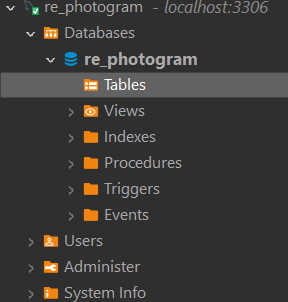 - `re_photogram` DB의 모든 테이블을 의미함