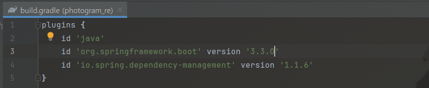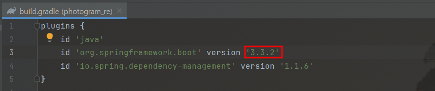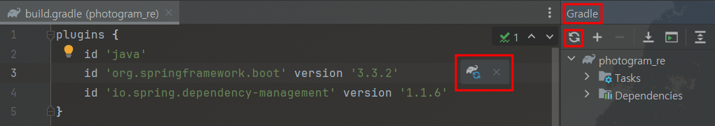버전을 `3.3.0`으로 바꾼 후에, Gradle 프로젝트를 reload한다.
