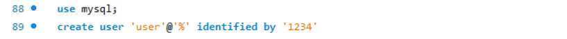 create user 'user'@'%' identified by '1234';